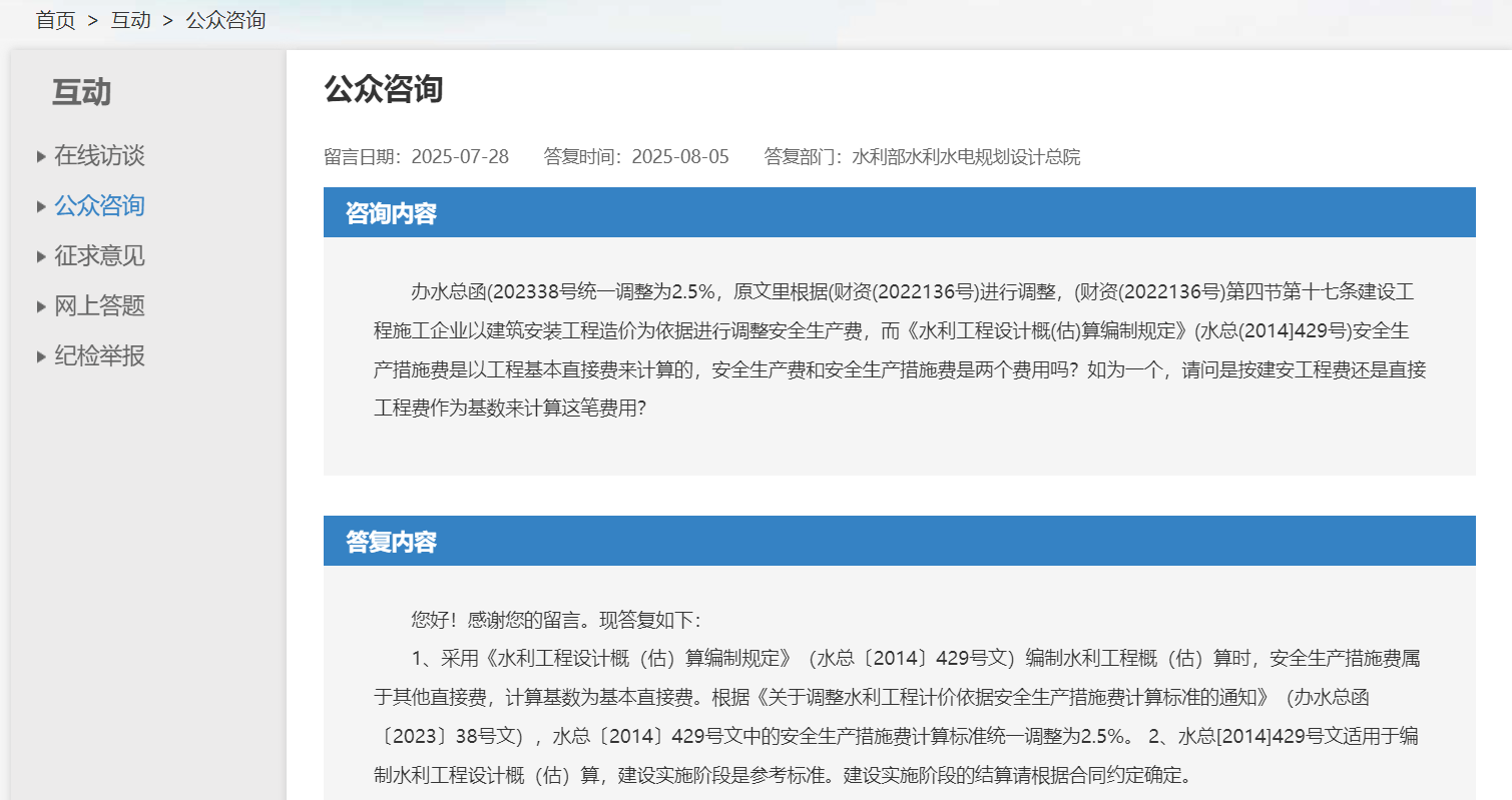 SL2025-013、安全生产措施费(水总院 2025-08-05回复)-水利电力土地水保-湖北小目标工程咨询有限公司